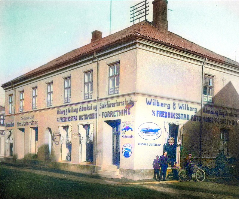 A/S Fredrikstad Automobil-Forretnings første lokaler i Nygaardsgata, tidlig 1920-tall.