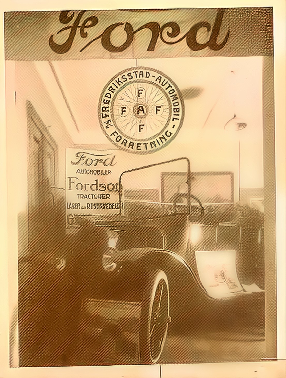Utstilling av Ford-automobiler og traktorer, med reservedelslager i Fredrikstad.